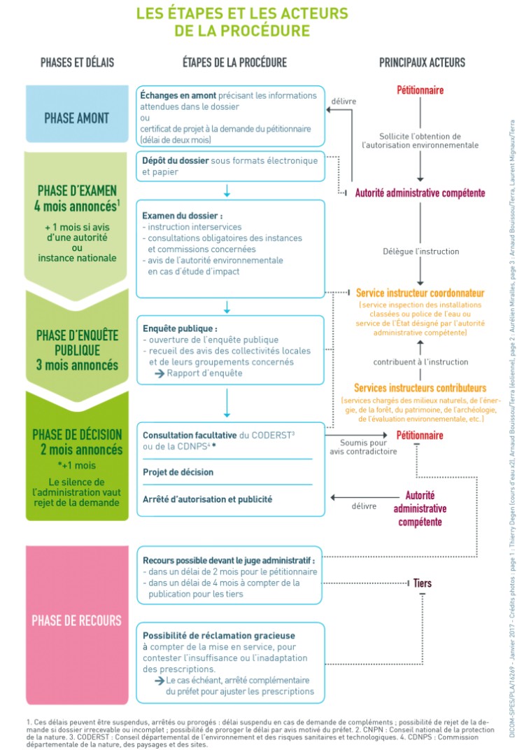 Cette fiche fait état des acteurs et étapes liés à l'obtention de l'autorisation environnementale. Le déroulement des étapes est approfondi dans la fiche procédure d'instruction du dossier d'autorisation environnementale.